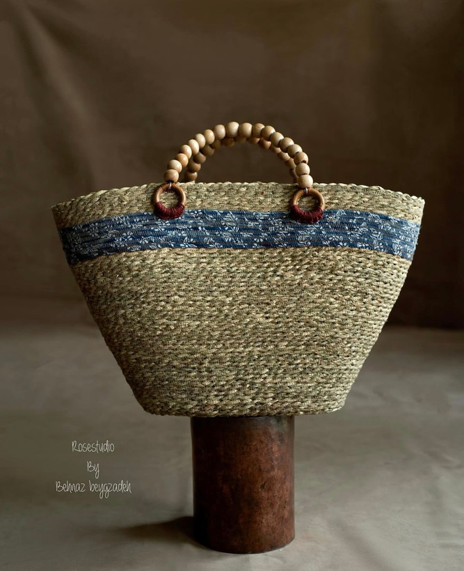 کیف حصیری دست بافت قطر کفی ۲۵ ارتفاع ۳۵